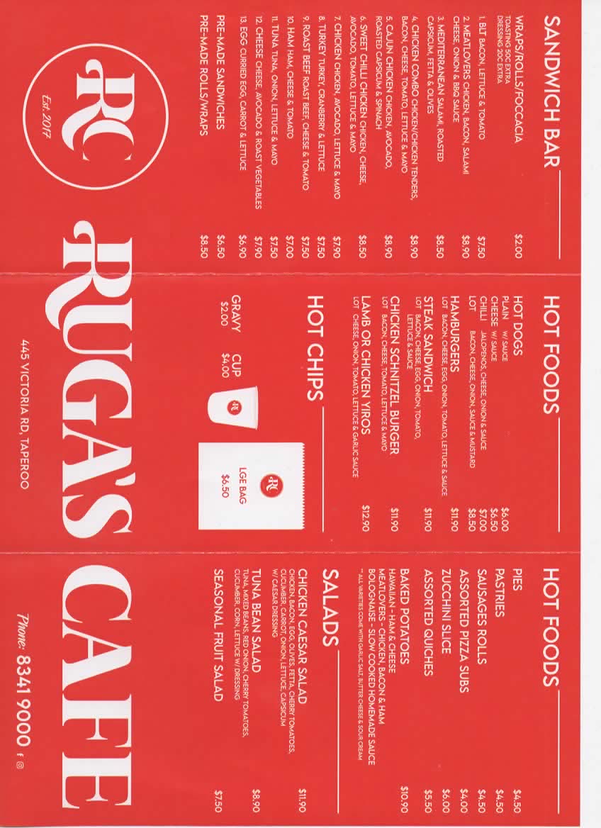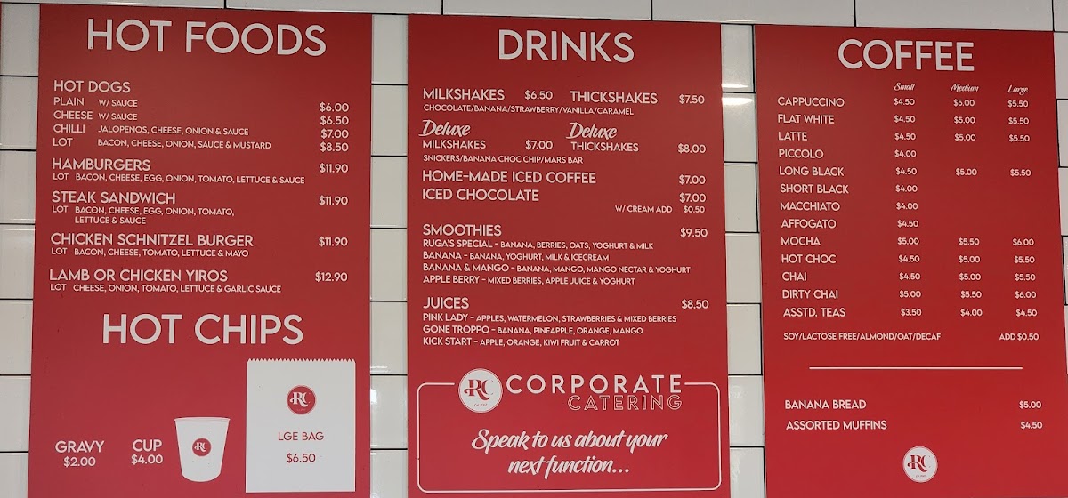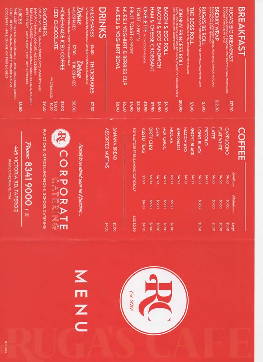 Ruga's Cafe Menu